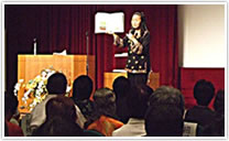 表情豊かに絵本の「読みあい」についてのエピソードを語る村中さん。会場全体が、絵本の世界に引き込まれ、温かな雰囲気に包まれました。